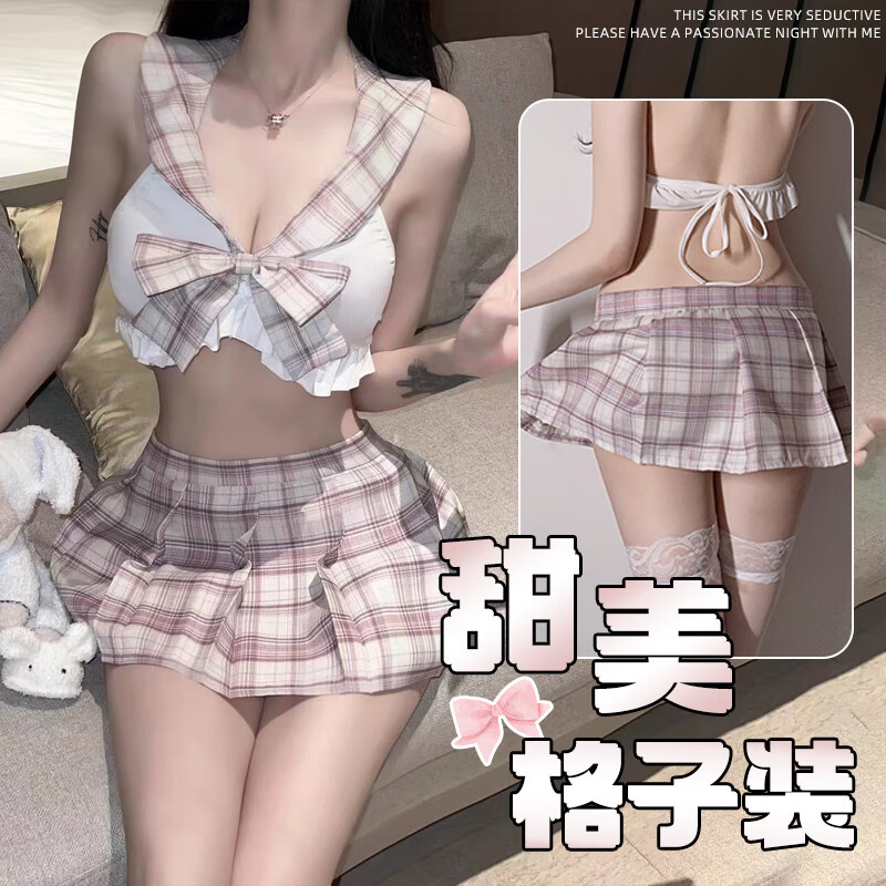 Seragam lingerie seksi, lingerie seksi menggoda, rok pendek keinginan murni, baju tidur, setelan thong, kasur gairah gaya kuliah murni