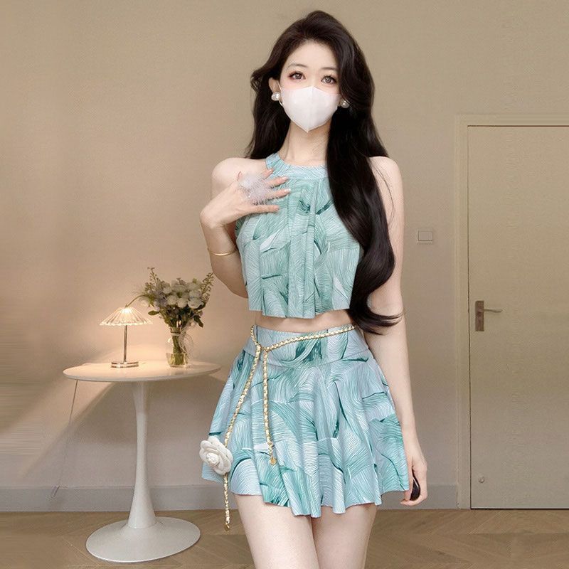 Baju Renang Gaya Liburan Pantai Pakaian Renang Mata Air Panas Konservatif Berendam Siswa Terlihat Ramping Menutupi Perut Model Baru 2023 Rok Model Baru Musim Panas Wanita