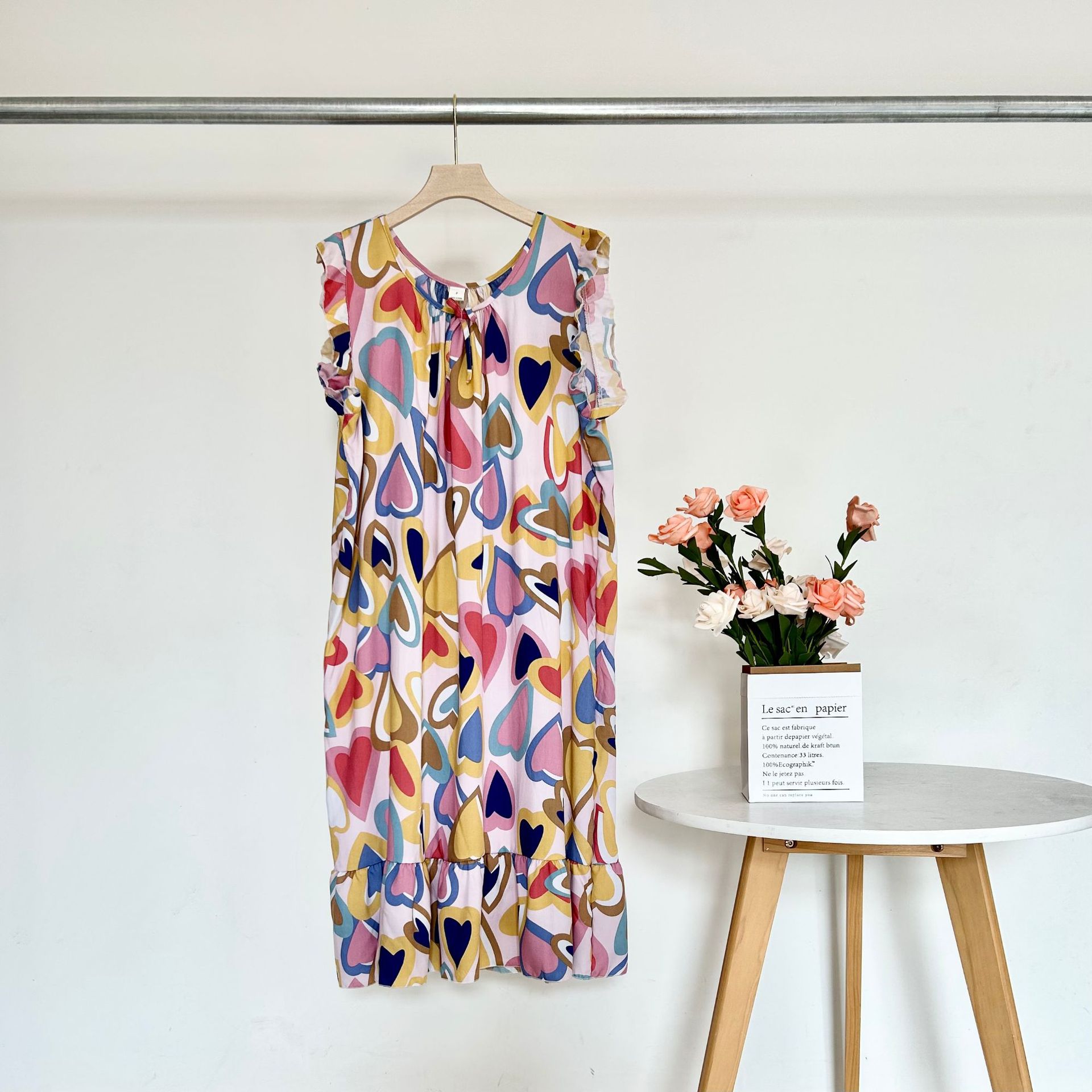 Gaun malam Slip-on Gaun tipis musim panas wanita rok midi krisan kartun cetak tipis sutra susu pelajar