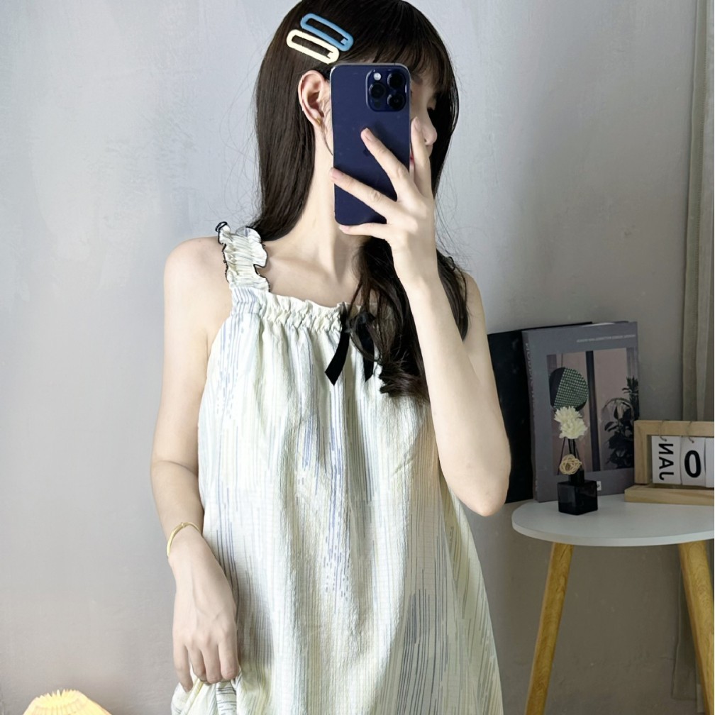 Gaun malam wanita, Ruffled tali katun gaya peri siswa wanita rompi piyama keren katun tali renda