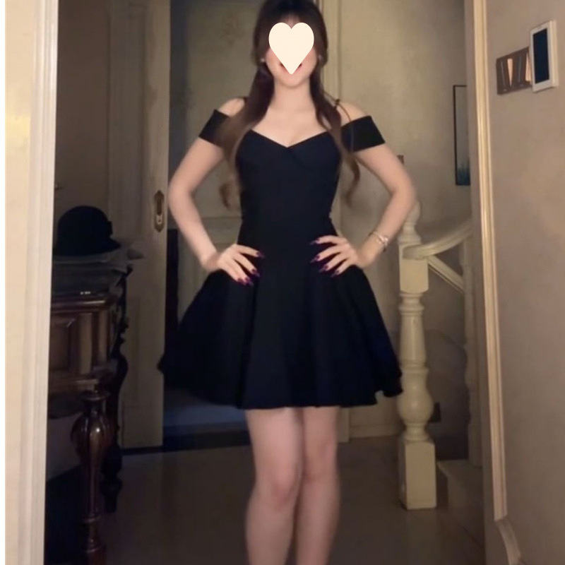 Gaun tali bunga hitam baru musim panas 2024 rok pendek a-line pinggang lembut pelajar wanita untuk wanita