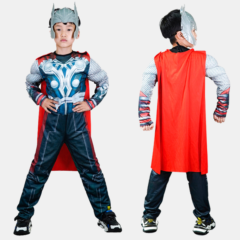 Kostum otot untuk anak-anak dan dewasa, kostum pertunjukan cospaly, pakaian Thor Halloween untuk anak-anak dan dewasa