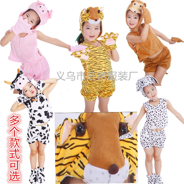 Kostum anak-anak lengan pendek, kostum kartun Macan Putih kelinci sapi bebek monyet
