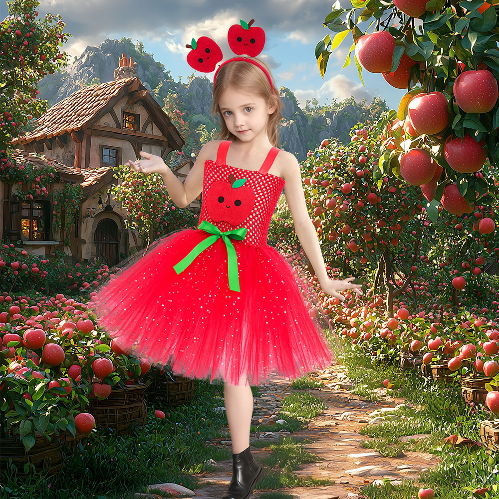 Kostum Halloween Crossborder Gaun Anak Perempuan Pakaian Pertunjukan Bentuk Buah Rok Tutu Pertunjukan Panggung Apple Anak-anak