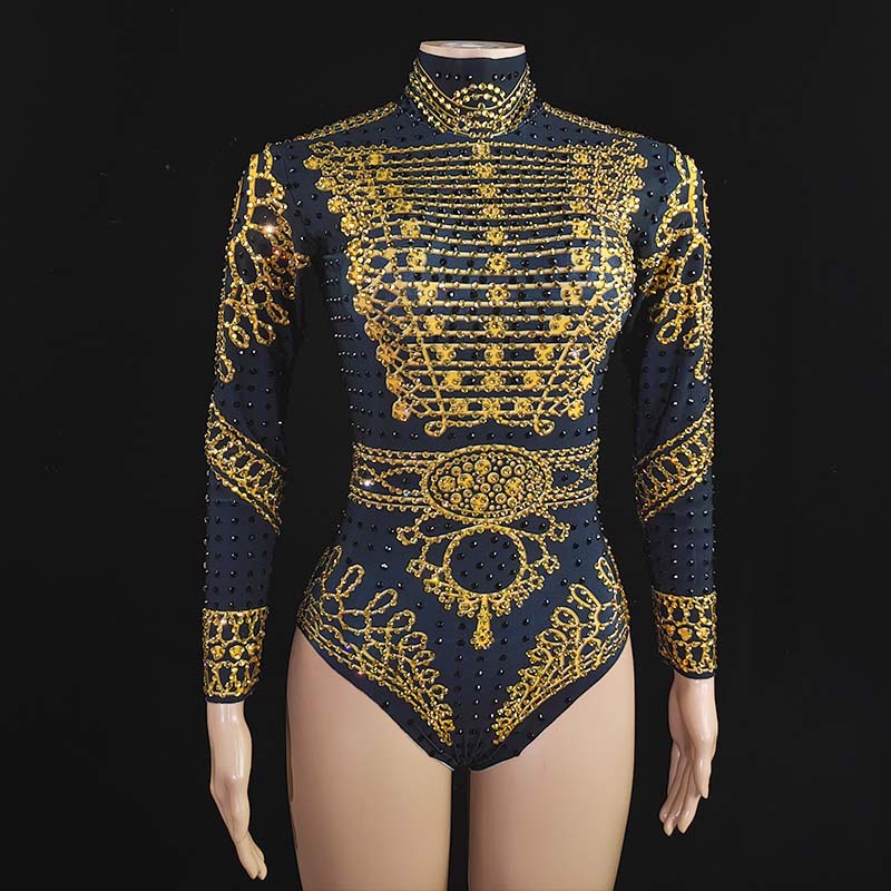 Kostum penampilan panggung jumpsuit ketat melar berlian berkilau seksi dansa penyanyi Eropa dan Amerika