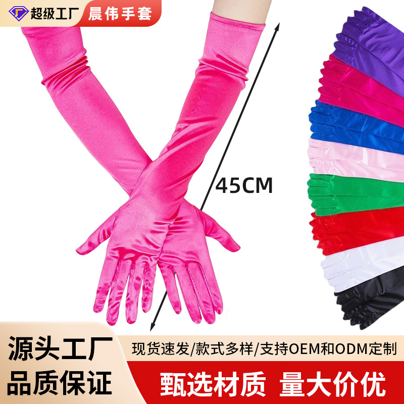 Sarung tangan satin datar 45cm, sarung tangan penampilan panggung, sarung tangan etiket gaun formal, sarung tangan pernikahan, sarung tangan Aksesori