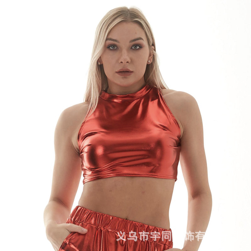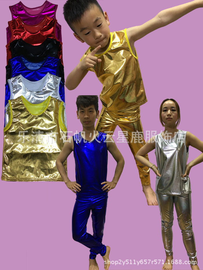 Mode musim panas pakaian panggung pria dan wanita Aktor penyanyi anak-anak rompi tanpa lengan melar kulit imitasi berkilau rompi trendi
