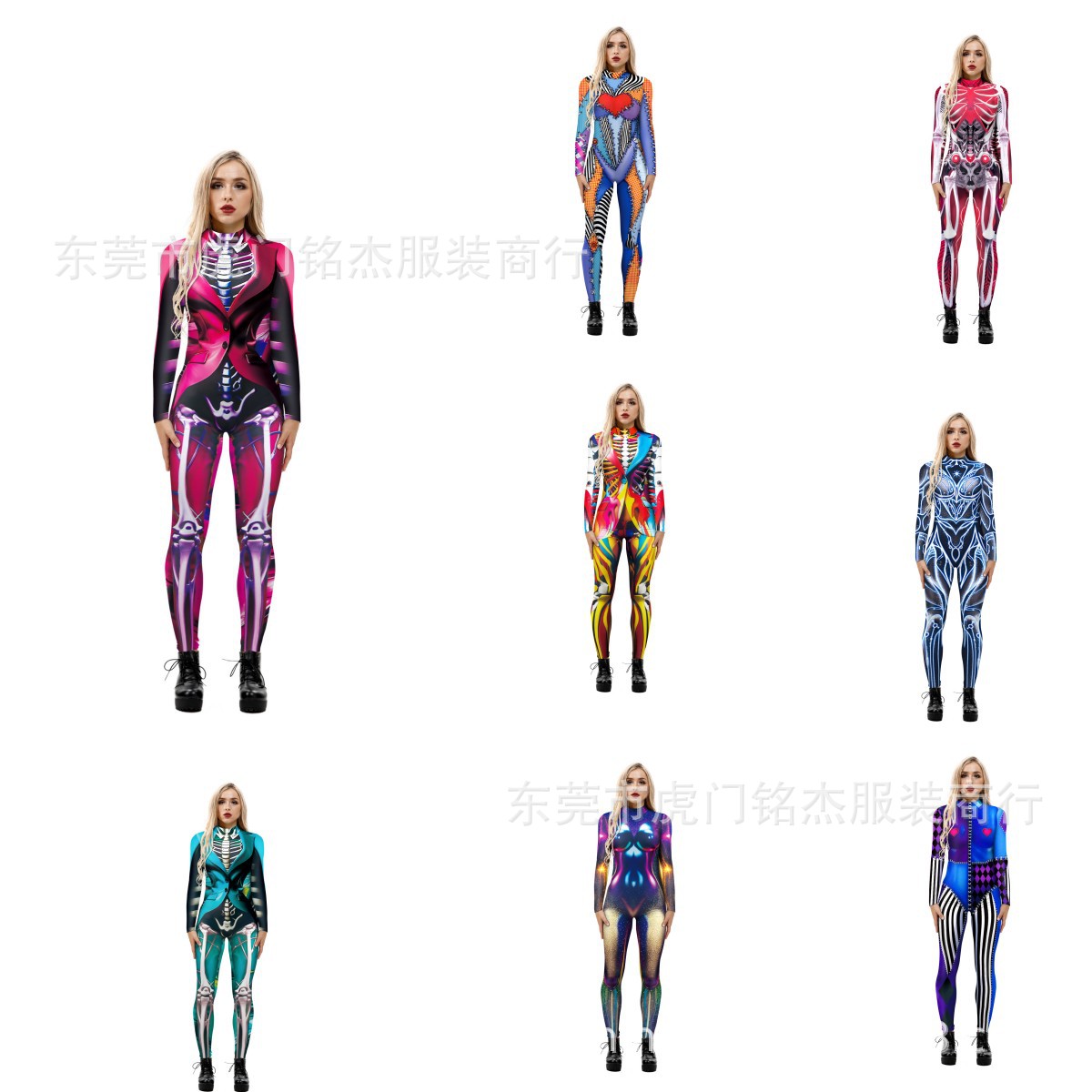 Pakaian Pertunjukan Panggung Halloween Cosplay Lengan Panjang Ketat Digital Print Jumpsuit Jumpsuit