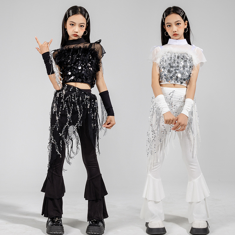 Setelan Tari Jazz Anak-anak Pakaian Pertunjukan Keren Modis Anak Perempuan Model Fashion Catwalk Pakaian Trendi