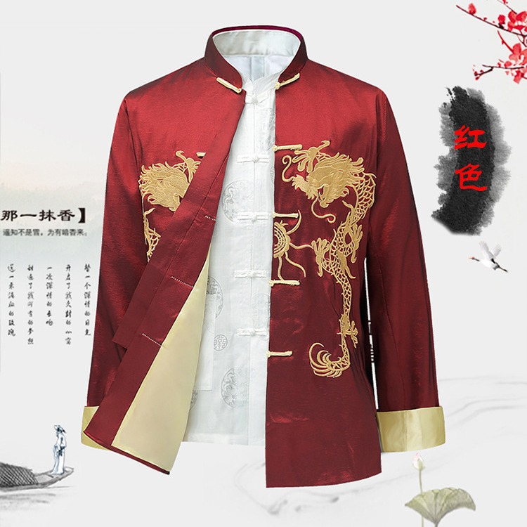 Grosir kostum sutra wanita paruh baya dan lansia, kostum bernyanyi gaya China, kostum Tang gesper musim semi, kostum bordir kerah berdiri
