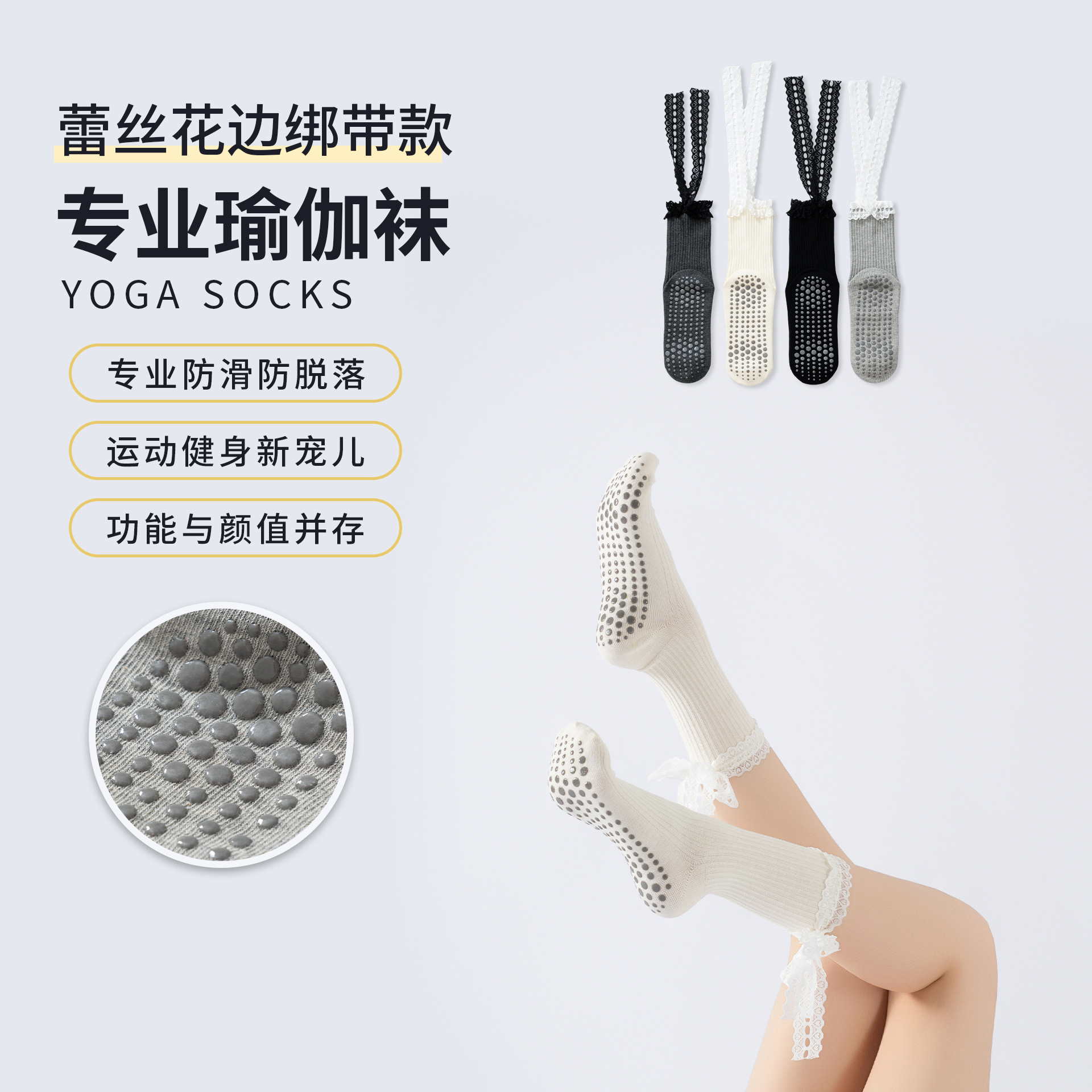 2025新品蕾丝绑带款瑜伽袜防滑健身跳操运动舞蹈袜百搭纯色蝴蝶结