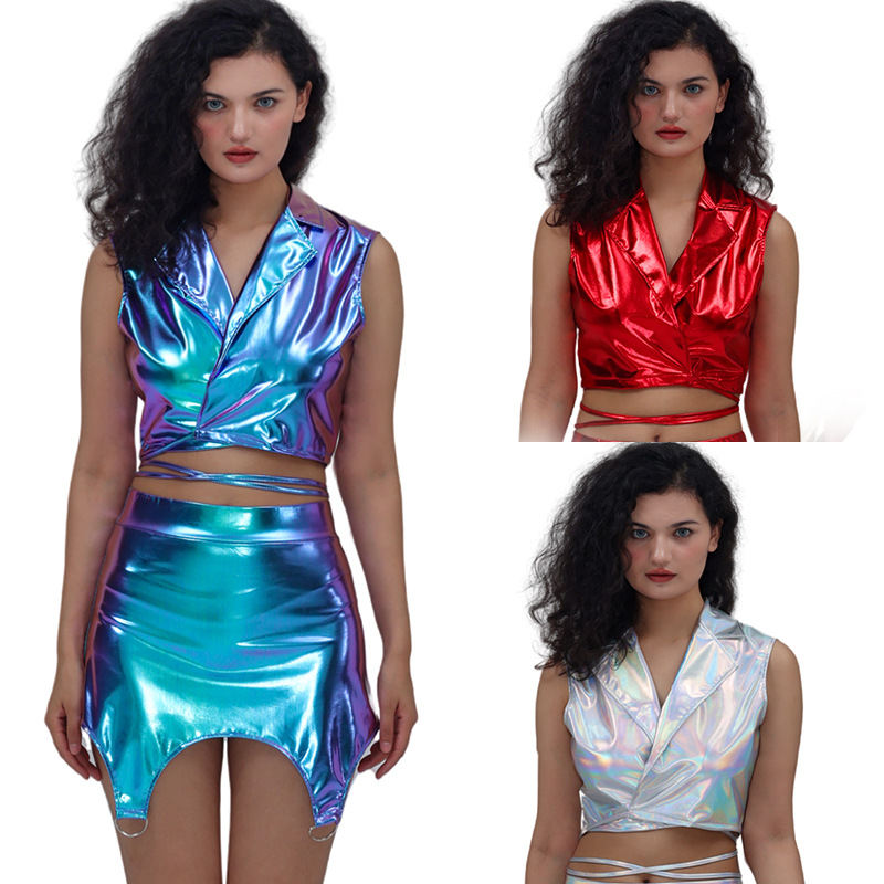 Cross-Border Eropa dan Amerika Multi-Warna-warni Kerah Tanpa Lengan Tali Tank-top Metal Slim-fit Pakaian Pertunjukan Panggung Penjualan Langsung Pabrik