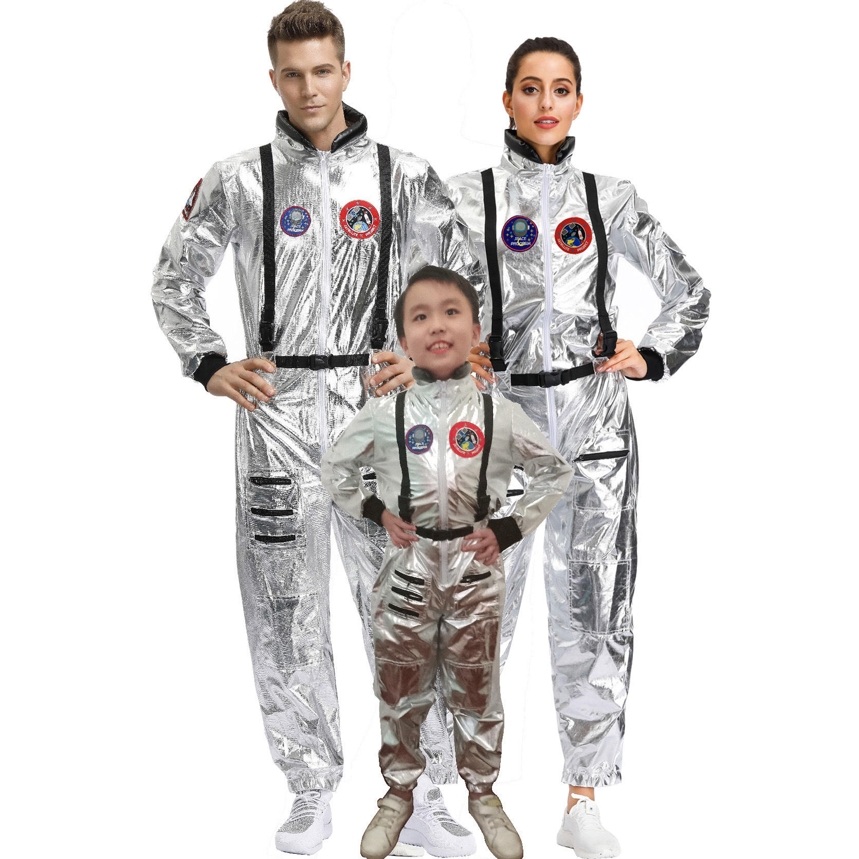 M-XL kostum Pasangan Halloween pria dan wanita, kostum seragam luar angkasa gaya sama petualang, kostum panggung astronot