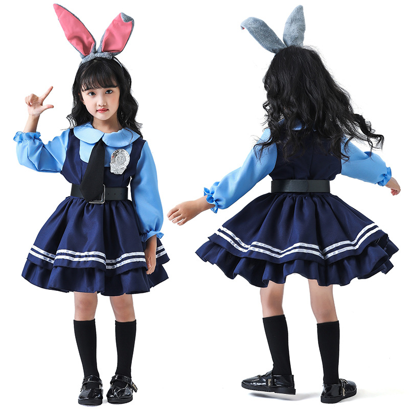 Kostum Halloween hewan gila kota pria dan wanita orang tua-anak Judy kelinci petugas polisi cos set lengkap kostum panggung pasangan