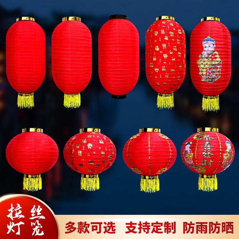 Lentera labu lilin merah bulat panjang, lentera dekorasi luar ruangan tahan air, alat peraga dansa, lentera lipat model Korea