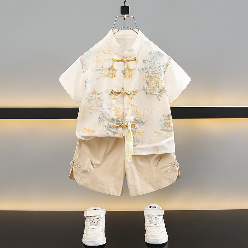 Pakaian Han Pakaian Anak Laki-Laki Pakaian Etnik Musim Panas Gaya Tiongkok Baru Pakaian Musim Panas Model Tipis Gaya Nasional Anak