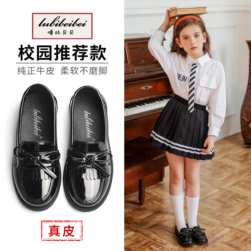 Sepatu kulit anak perempuan musim panas tipis sol lembut sepatu putri anak-anak sepatu kuliah hitam gaya Inggris baru musim semi dan musim gugur sepatu performa