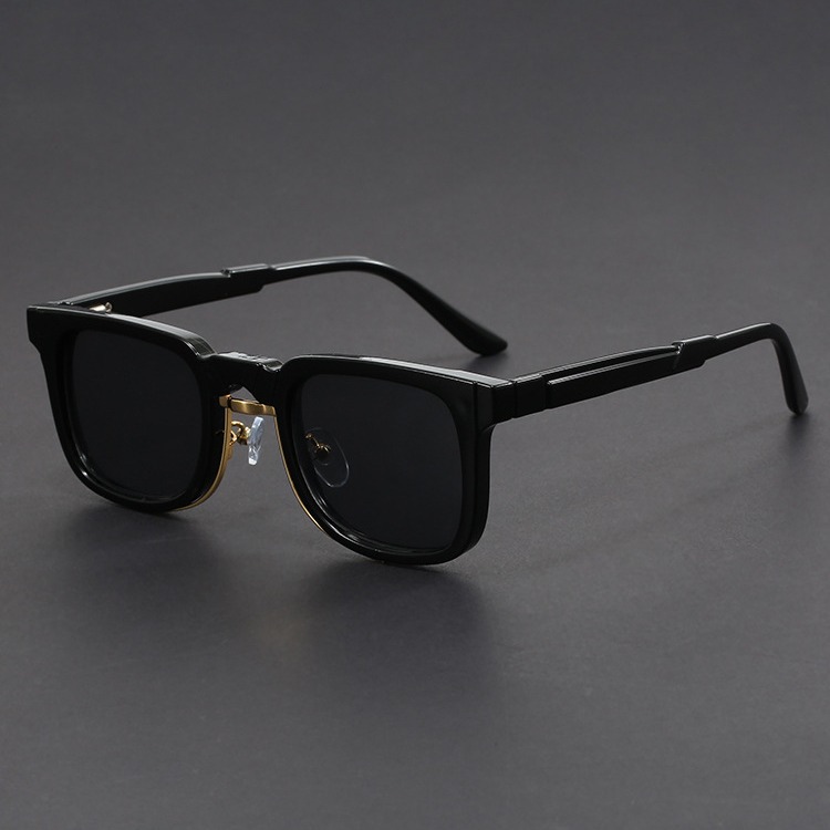 欧美复古方形墨镜女2025新款绿色嘻哈太阳眼镜男款高级感潮弹簧腿