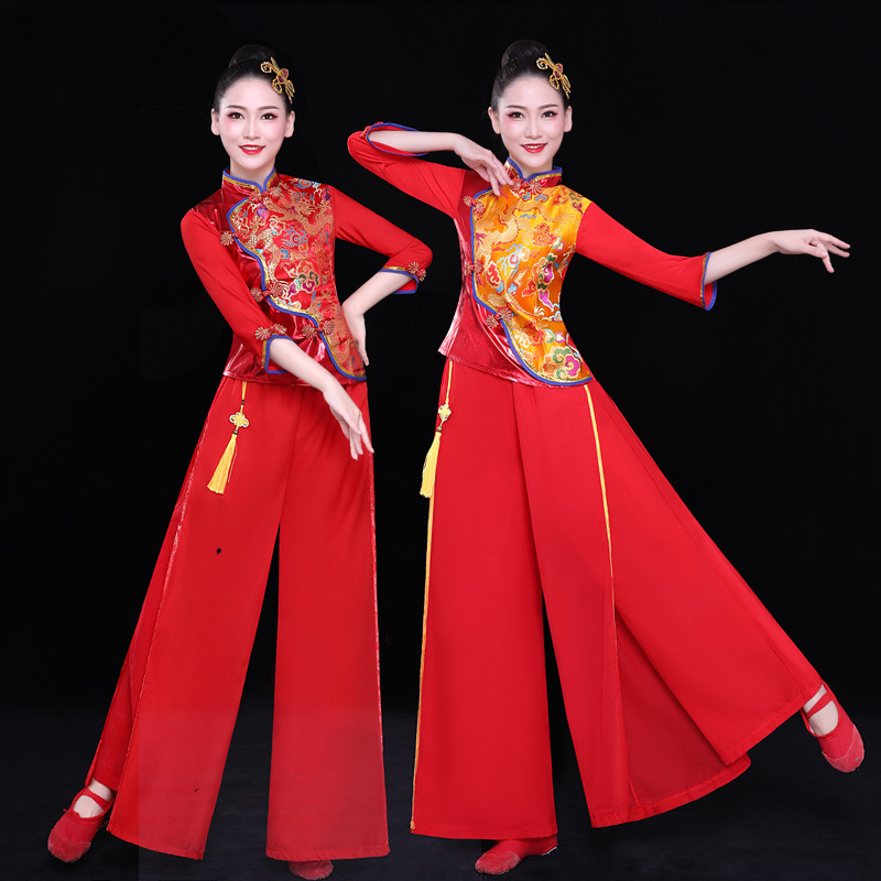 20 hari baru tahun baru pakaian main drum etnik pakaian penampilan wanita pakaian pentas drum pinggang gaun nine-quarter lengan penampilan tari persegi dewasa