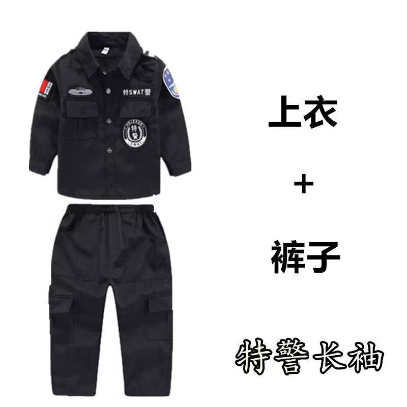 Setelan seragam polisi khusus anak-anak, seragam kinerja militer, kepala polisi Pasukan Khusus Anak laki-laki dan perempuan
