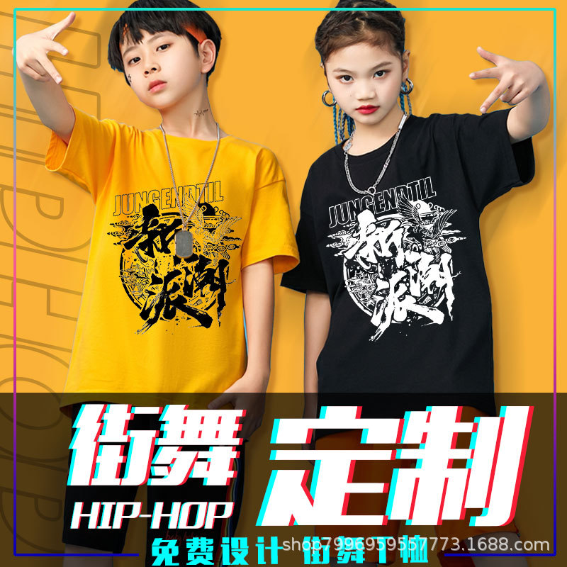 Kaus lengan pendek hip hop anak-anak, pakaian pertunjukan tari jazz anak laki-laki kelas latihan ruang dansa logo kustom kaus lengan pendek hip hop anak-anak