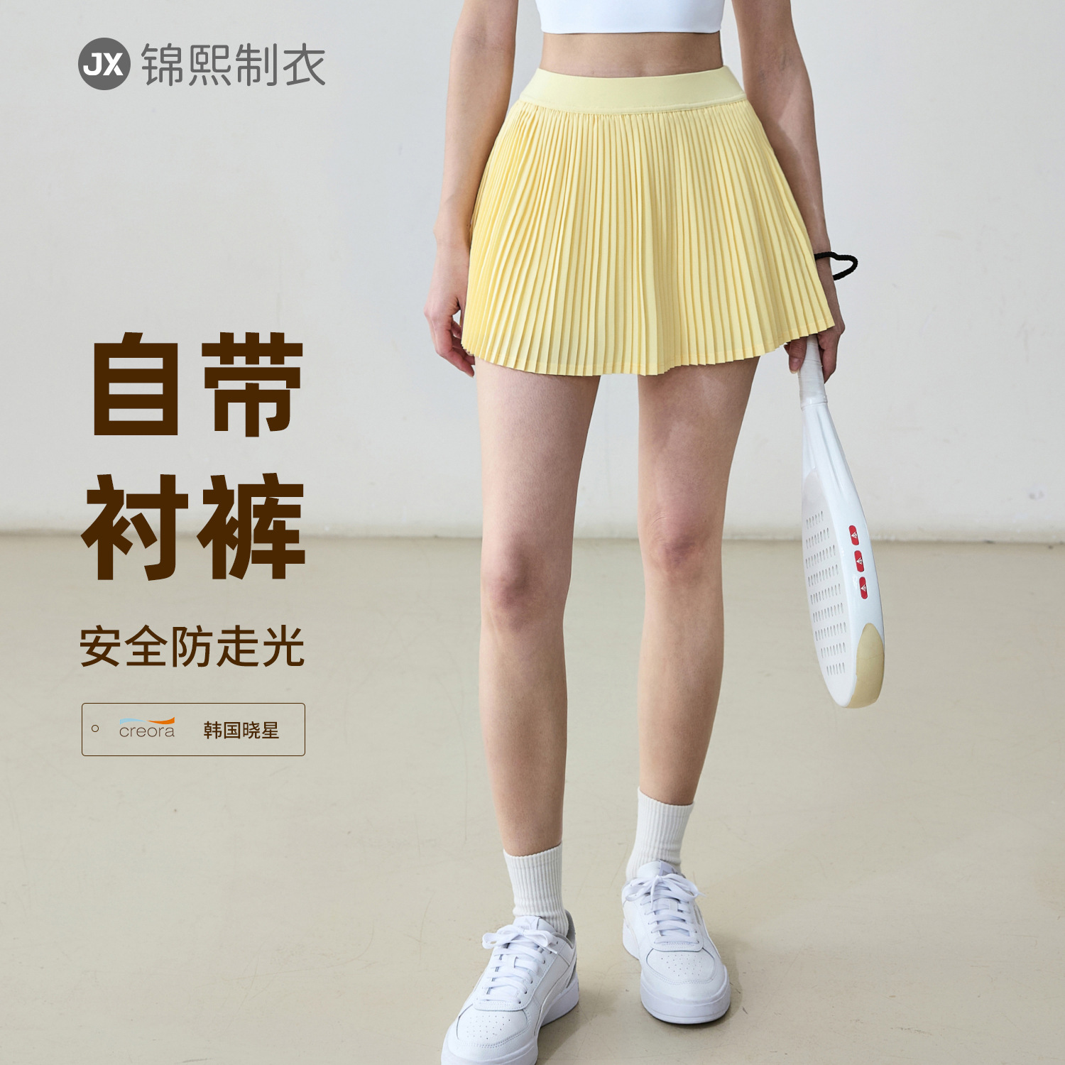 夏季百褶裙透气高腰瑜伽运动裙女双层防走光速干舞蹈网球短裙