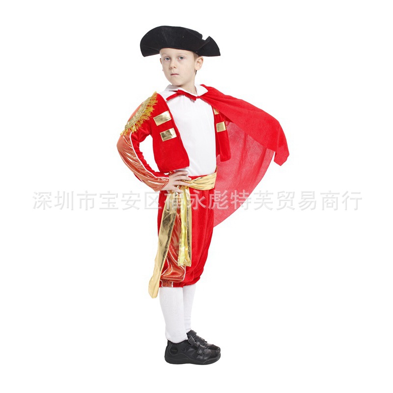 Kostum cosplay Halloween anak perempuan, pakaian pertunjukan masquerade Spanyol gaun bullfighter bunga