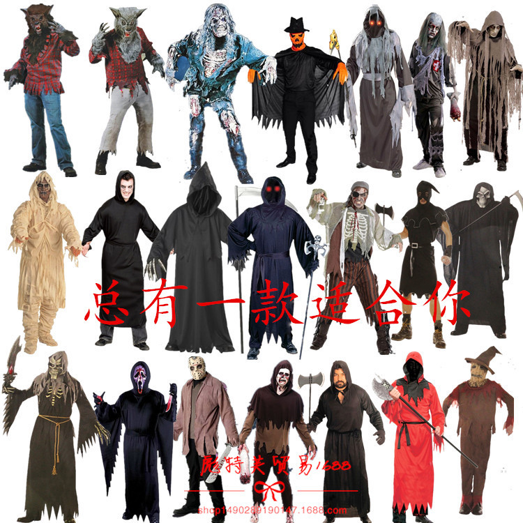 Kostum karakter horor, kostum pesta Halloween dewasa, pertunjukan, manusia serigala, zombie kematian, karakter horor