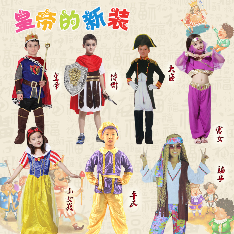 Kostum pesta anak-anak, kostum raja, kostum menteri liar, kostum kaisar baru, kostum Raja
