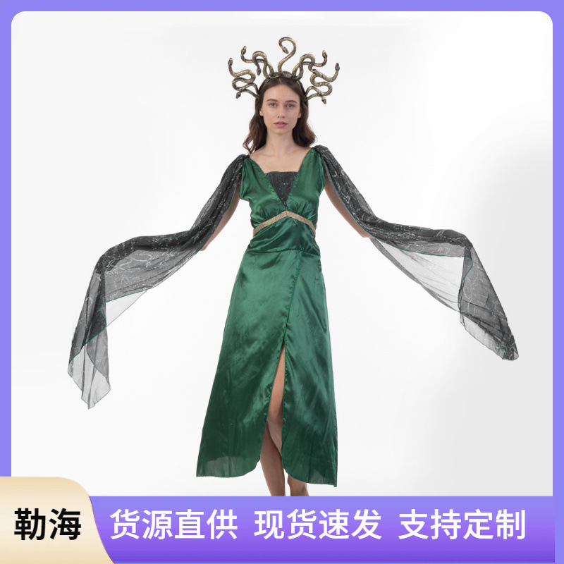 万圣节服装 儿童希腊神话青色戈耳工蛇发女妖cosplay美杜莎表演服