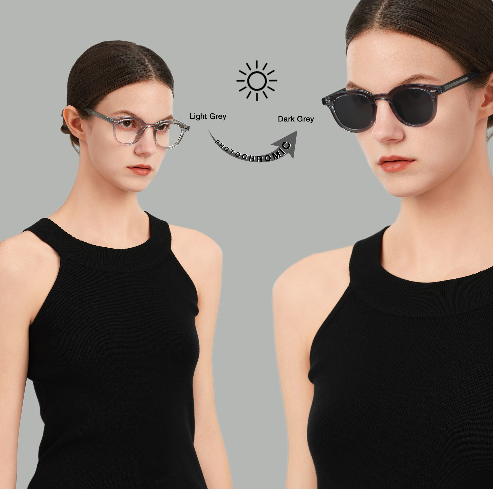 新款52604注塑板材框变色片太阳镜高级感圆框韩系男女街拍墨镜潮