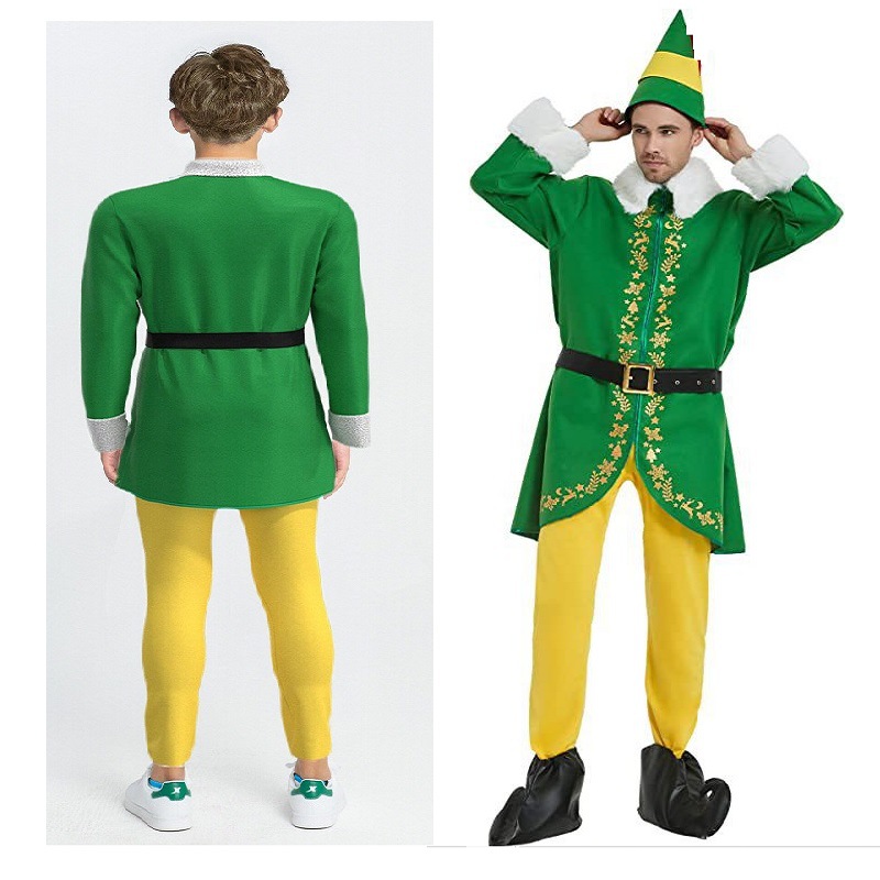 Kostum cosplay pohon Natal dewasa, kostum pertunjukan cosplay hijau elf, kostum panggung pesta pasangan Natal