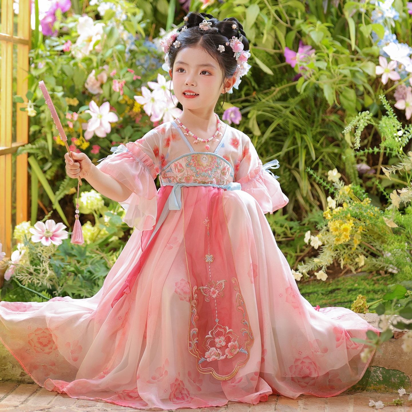 2025年春夏新款汉服女童中国风超仙连衣裙儿童表演服襦裙公主裙