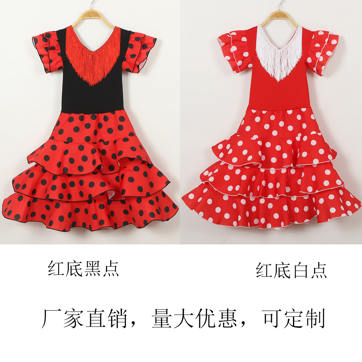 Gaun Anak-anak Pakaian Tari Flamenco Voramenco Rok Tari Spanyol Rok Tepi Daun Rok Merah