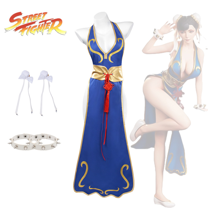 Chunli baju cosplay anime kostum Halloween, kostum cheongsam lion seksi, pakaian tempur jalanan baru