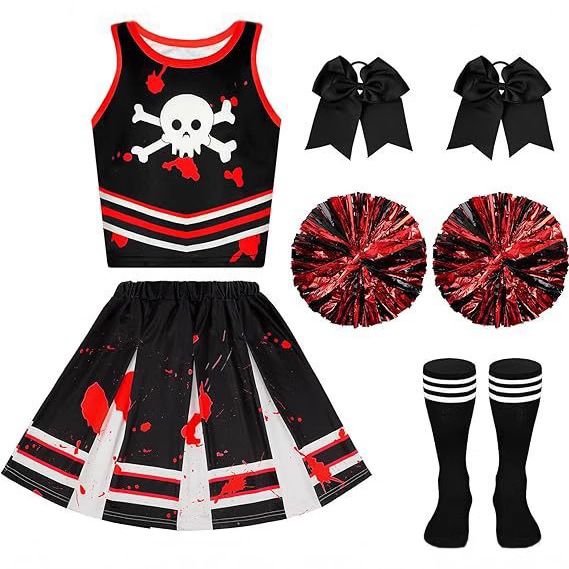 Pakaian Pemandu Sorak Halloween Gaun Set Tanpa Lengan Pakaian Pertunjukan Anak-Anak Bernoda Darah Menakutkan Horor Pesta Rias