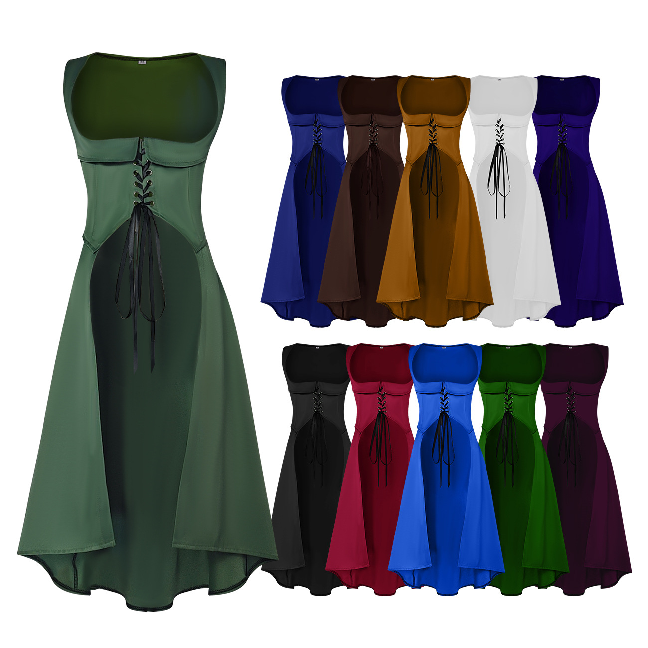 Halloween COS Abad Pertengahan Renaissance wanita jumpsuit Gaun panjang kostum panggung permainan peran kostum retro