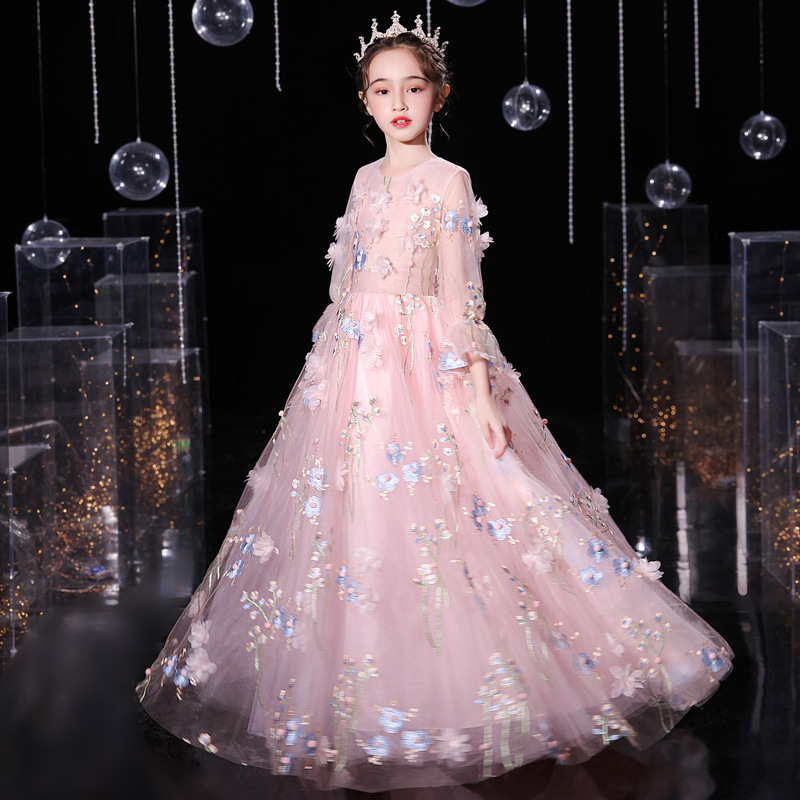 Gaun putri ulang tahun anak perempuan, Gaun berbulu gaya Barat kostum piano pernikahan baru 2024