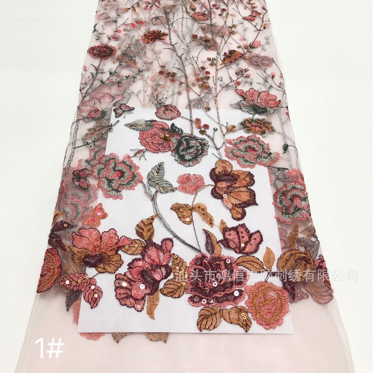 Positioning Jaring Bunga Bordir Datar Ditambah Manik-manik Gaun Kain Bordir Cheongsam Pakaian Panggung Tersedia 8 Warna Opsional