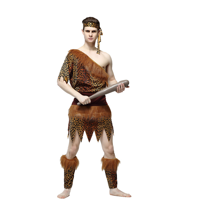 Kostum Savage Motif Macan Tutul Pria Dewasa untuk Halloween, Cosplay, Pesta Topeng, Permainan Peran, Pakaian Primitif