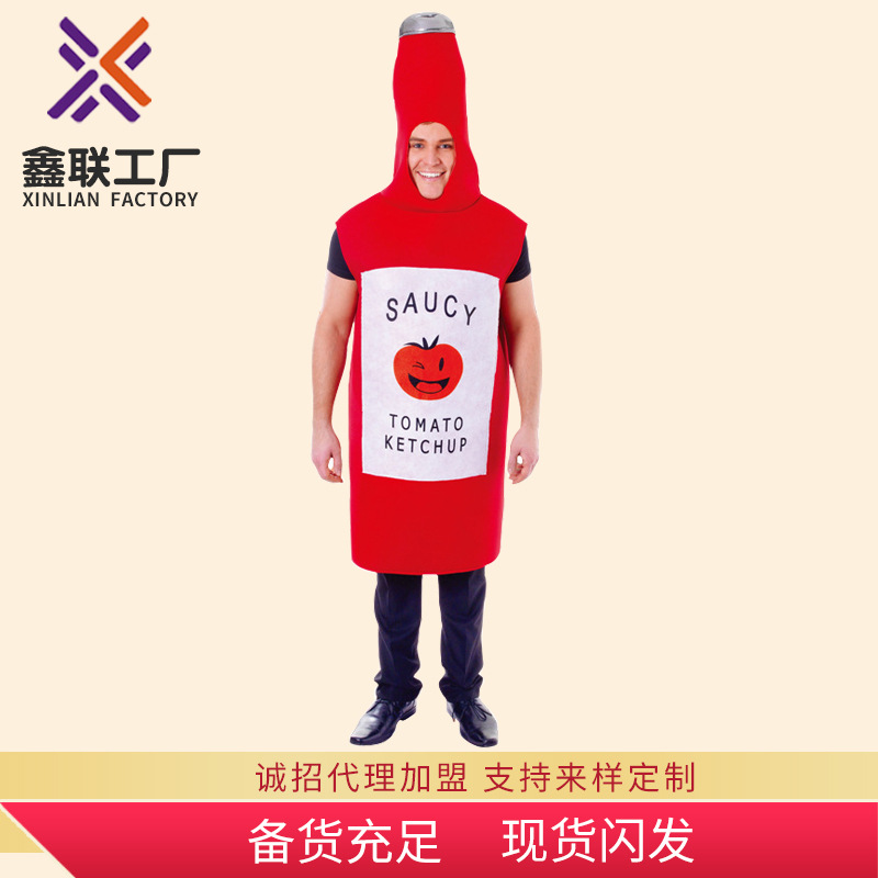 Kostum cosplay permainan karnaval Halloween kostum pertunjukan tari boneka kostum pertunjukan spons saus tomat