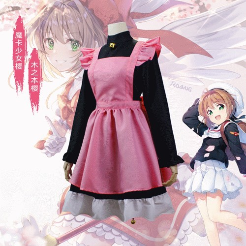 Kartu ajaib pakaian Sakura dapat diubah anak perempuan pakaian cosplay muzhiben Sakura Leica kucing setelan merah muda hitam kucing perempuan setelan transformasi cosplay