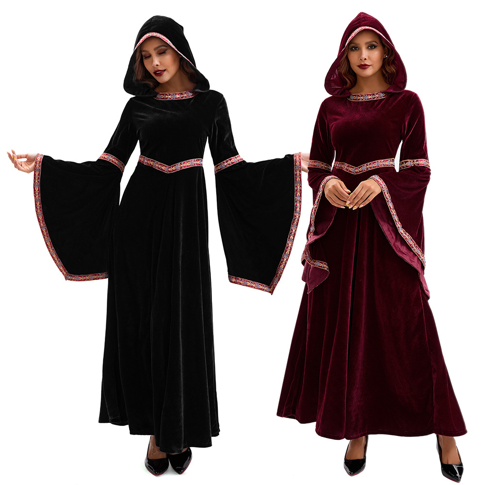 Pakaian Pertunjukan Anak dan Anak Halloween Pakaian Pesta Anak Perempuan Pakaian Pertunjukan Vampir Merah Anggur Abad Pertengahan Gaya Eropa Dewasa