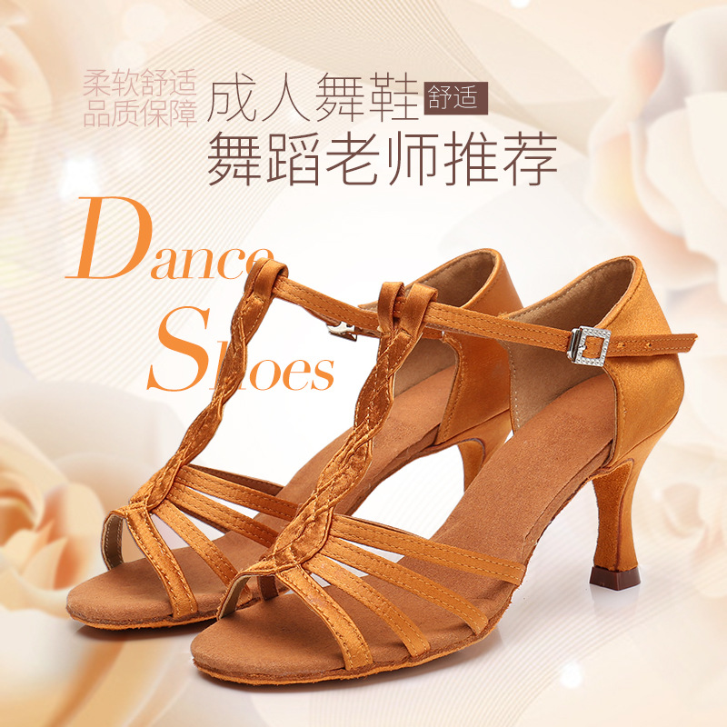 Sepatu dansa Latin hak tinggi dewasa wanita baru sepatu dansa satin nyaman sepatu dansa standar nasional putar hak tinggi Perdagangan Luar Negeri