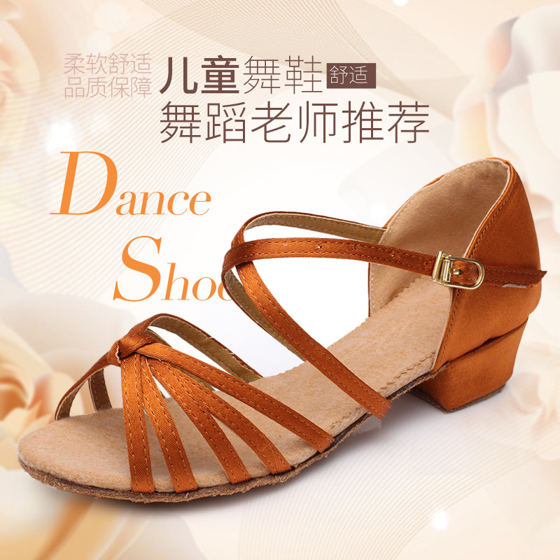 Sepatu dansa hak tinggi bahan satin untuk anak-anak, sepatu dansa Latin Sol empuk, sepatu latihan dansa Anak perempuan hanya Samba