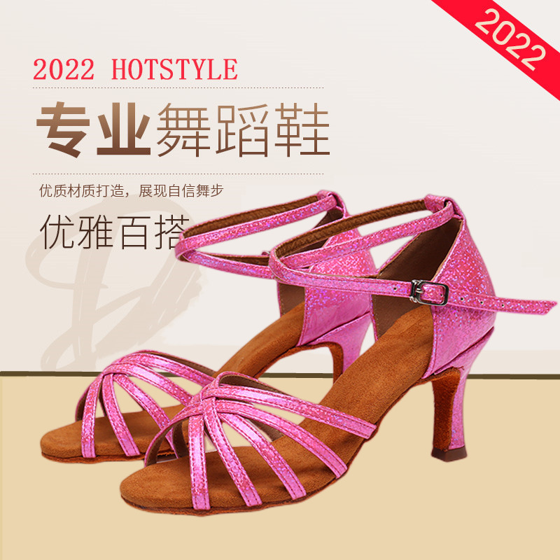 Sepatu dansa Latin hak tinggi musim panas baru 2023 sepatu latihan dansa profesional sepatu dansa dewasa wanita sol lembut mawar merah