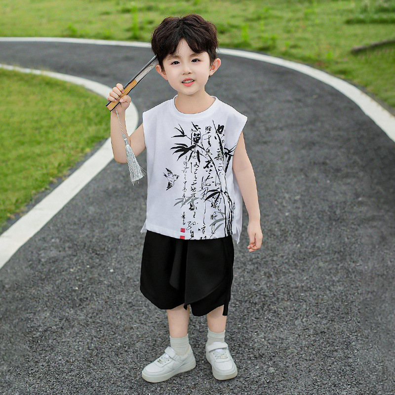 Setelan Hanfu Musim Panas Anak Laki-laki Model Baru 2025 Pakaian Musim Panas Anak Gaya Kuno Pakaian Tang Gaya Tiongkok Baru Pakaian Pertunjukan Anak Laki-laki Enam Hari