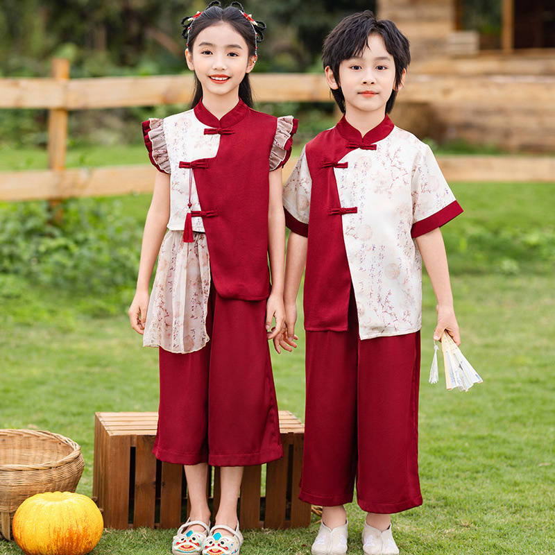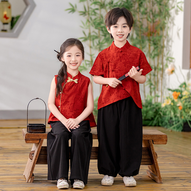 Setelan Pakaian Han Gaya Tiongkok Baru untuk Anak Laki-Laki dan Perempuan Pakaian Tang Gaya Kuno Anak-anak Musim Panas Pakaian Pertunjukan Anak Usia Menengah 2025 61