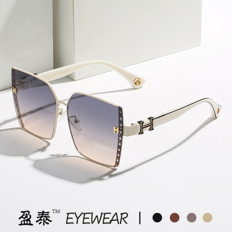 新款跨境欧美时尚太阳镜女 大框H镜腿个性穿搭墨镜潮防紫外线眼镜
