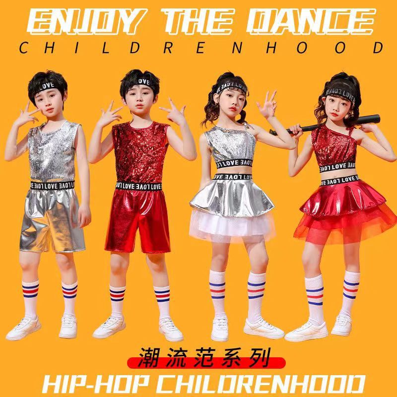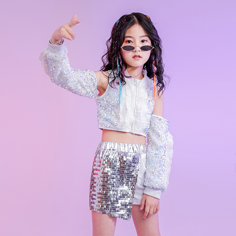 Pakaian modis untuk anak perempuan, kostum pertunjukan jazz anak perempuan, pakaian penampilan hip hop, setelan payet super keren, pakaian modis untuk anak perempuan
